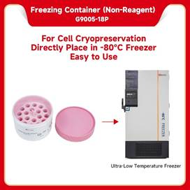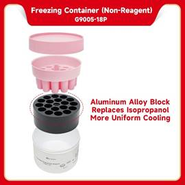 The Freezing Container requires no reagents, supports unlimited reuse cycles, and accommodates up to 18 tubes (2 mL or smaller). It is stackable, durable, and maintenance-free, with clear graphical instructions printed on the surface for user convenience. Custom lid colors are available upon request.